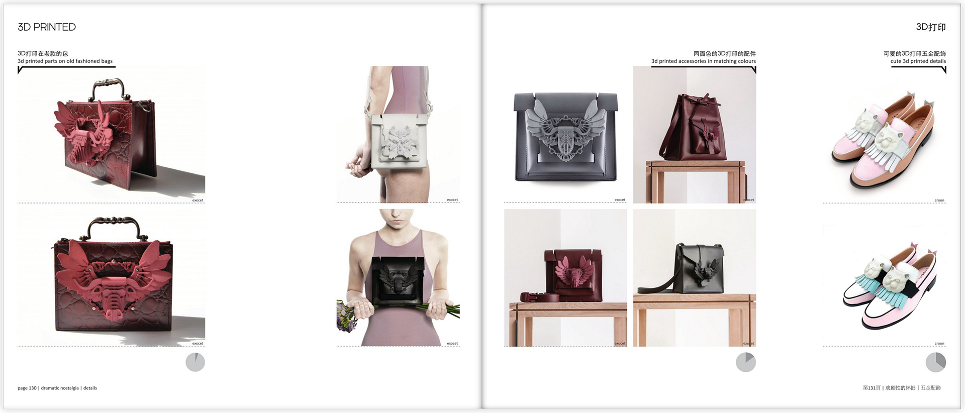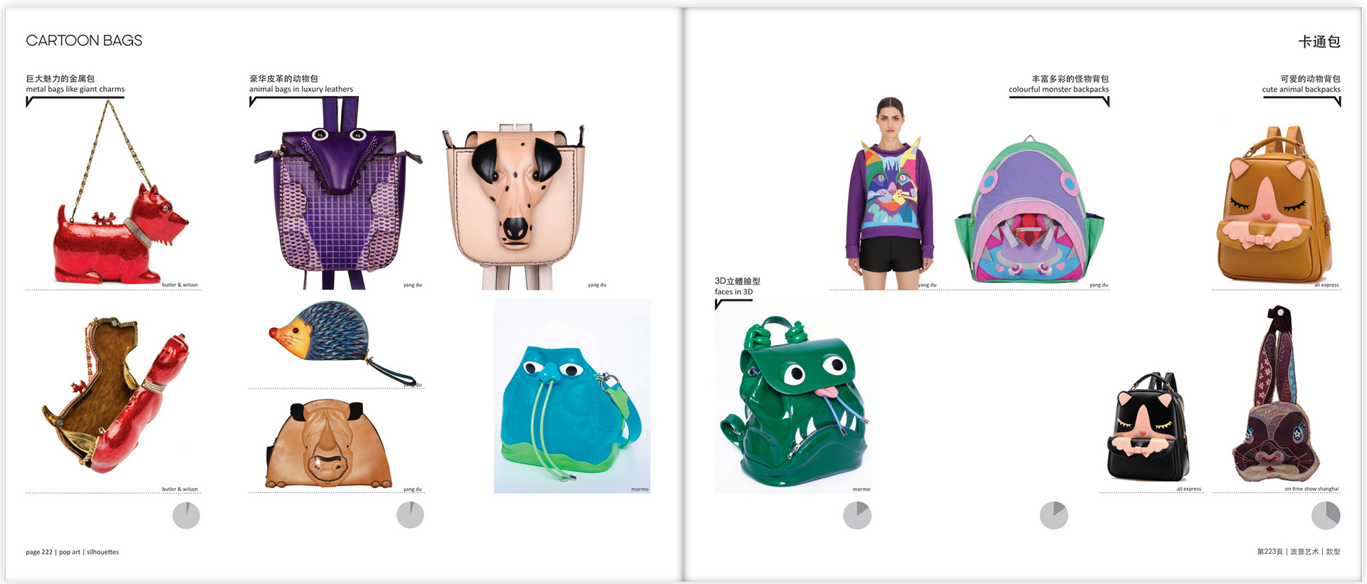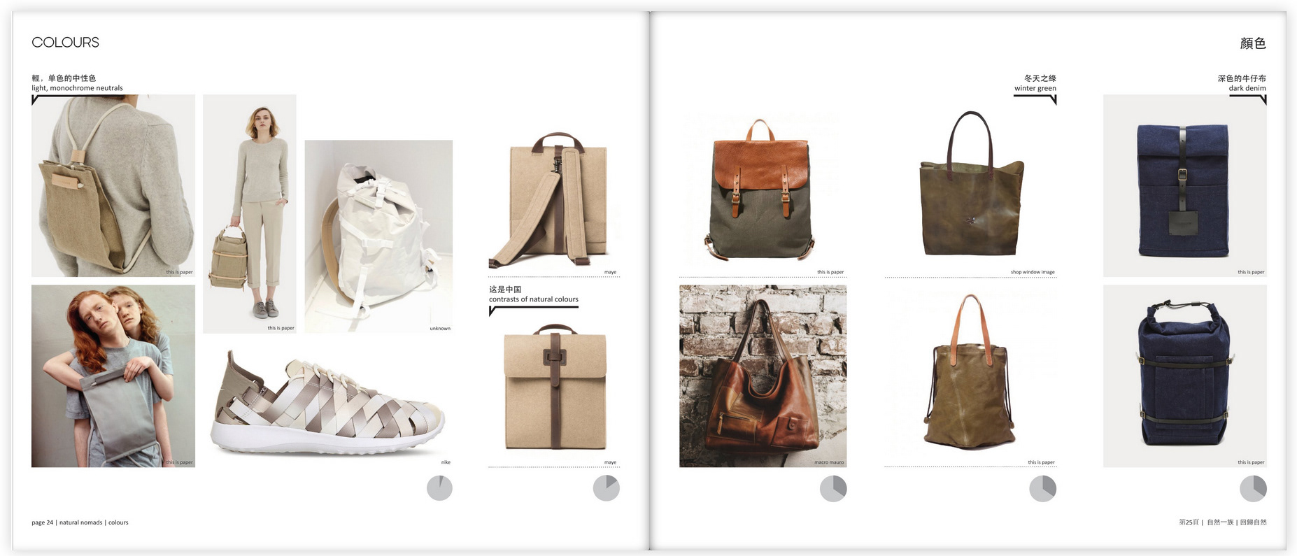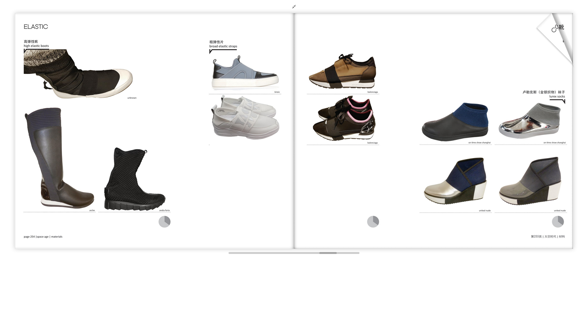 A 292 page trend book/manual for The Shenzen Footwear Federation on the major Chinese trends in footwear and bags. Defined different trend 'buckets', designed general layout, designed different infographics for the trend buckets.
