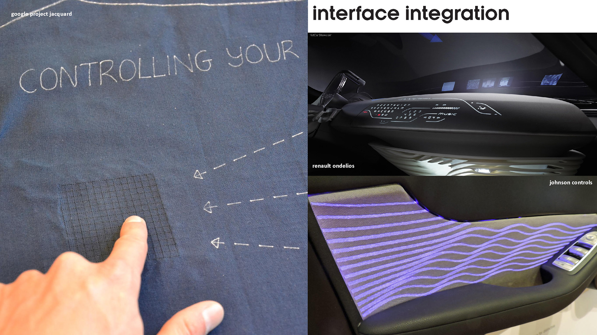 Concept development for Rinspeed Oasis interior. Developed framework of 'Home Street Home' where the car is an extension of the home and proposed material, interface and morphological solutions. Car premiered at CES 2017